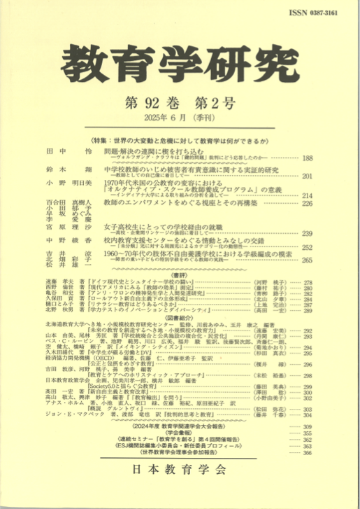 『教育学研究』第92巻第2号を刊行しました