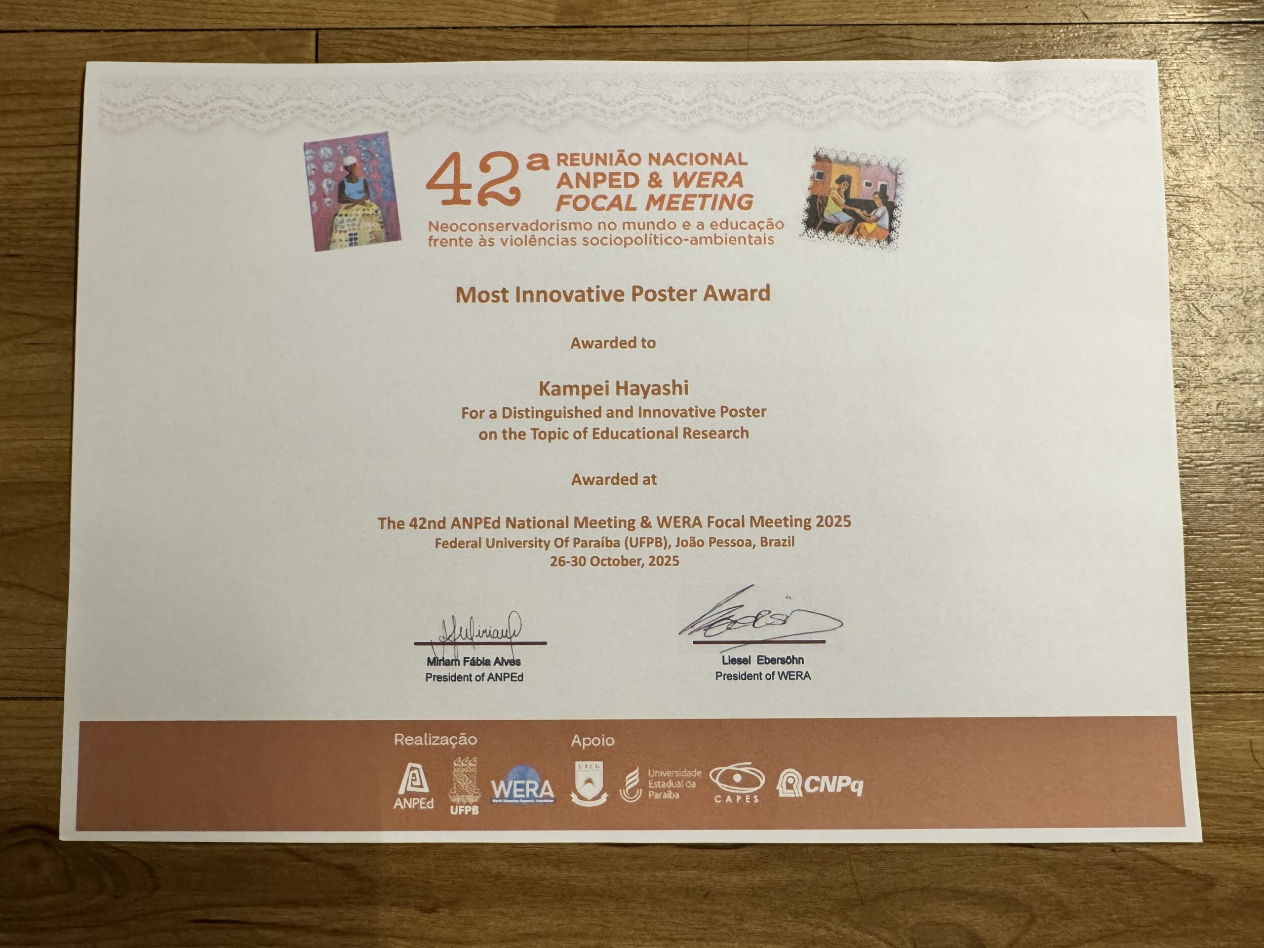 世界教育学会(The World Educational Research Associations: WERA)の年次大会(Focal Meeting)が2025年10月26~30日にブラジルで開催されました。