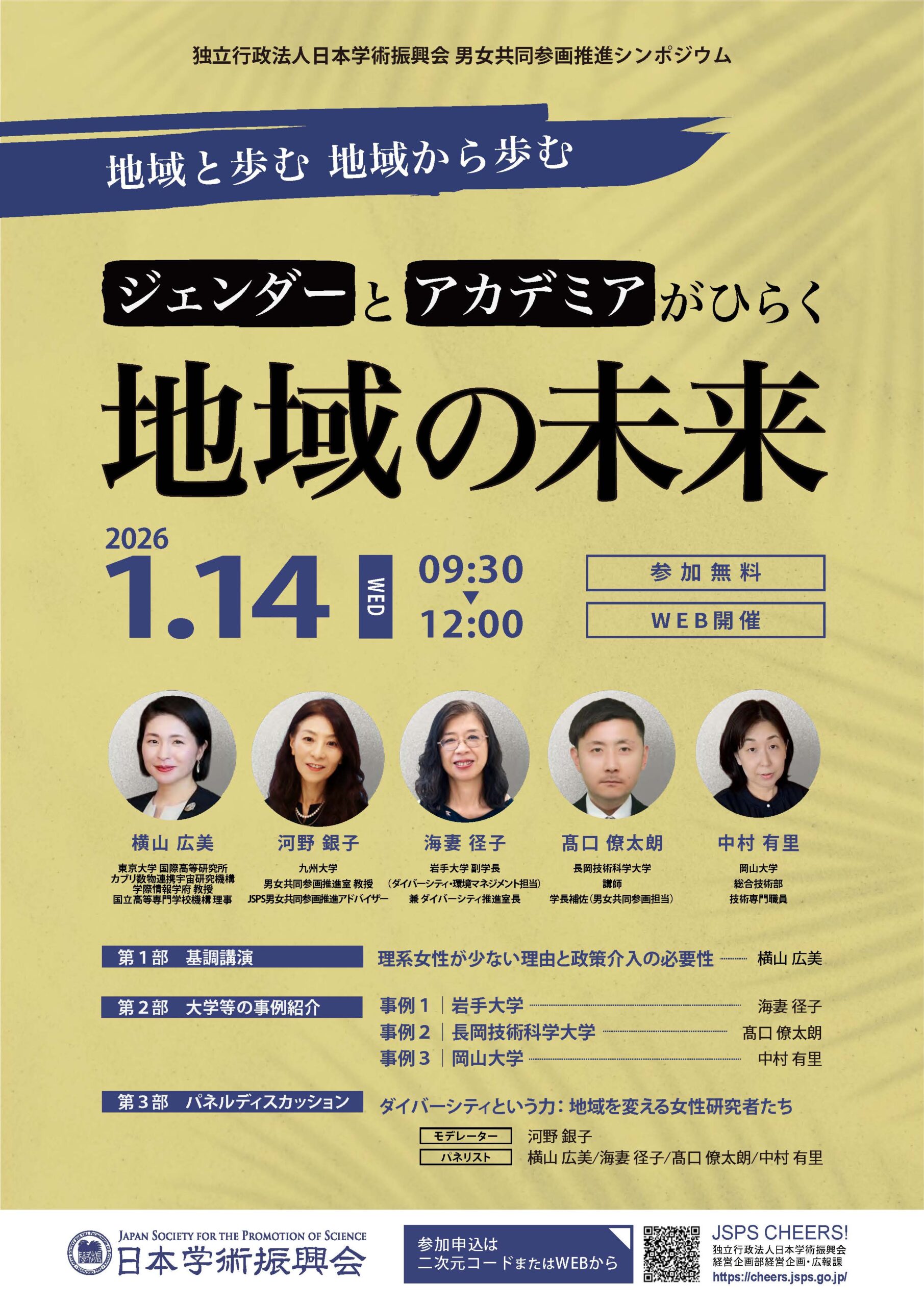 タイトル:JSPS男女共同参画推進シンポジウム「地域と歩む 地域から歩む~ジェンダーとアカデミアがひらく地域の未来~」